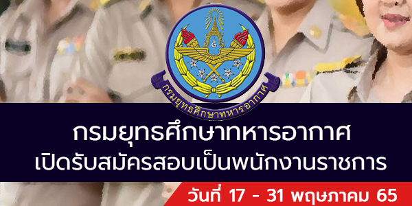กรมยุทธศึกษาทหารอากาศ เปิดรับสมัครสอบเป็นพนักงานราชการ 10 อัตรา รับสมัครด้วยตนเอง ตั้งแต่วันที่ 17 - 31 พฤษภาคม 2565