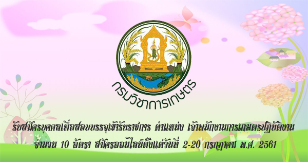 กรมวิชาการเกษตรรับสมัครบุคคลเพื่อสอบบรรจุเข้ารับราชการ ตำแหน่งเจ้าพนักงานการเกษตรปฏิบัติงานจำนวน10อัตราสมัครออนไลน์ตั้งแต่วันที่2-20กรกฎาคมพ.ศ.2561