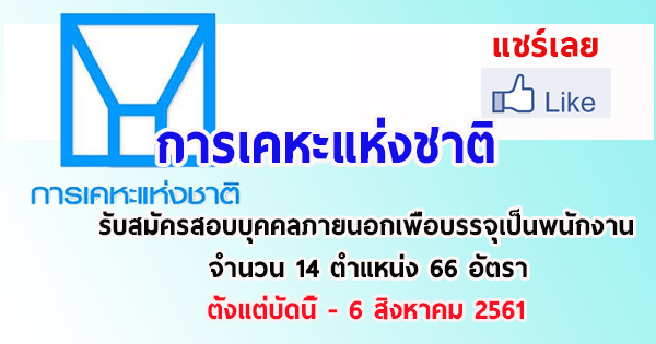 การเคหะแห่งชาติ รับสมัครสอบบุคคลภายนอกเพื่อบรรจุเป็นพนักงาน จำนวน 14 ตำแหน่ง 66 อัตรา ตั้งแต่บัดนี้-6 สิงหาคม 2561
